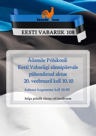 Ääsmäe Põhikooli Eesti Vabariigi sünnipäevale pühendatud aktus 20.veebriaril kell 10.10