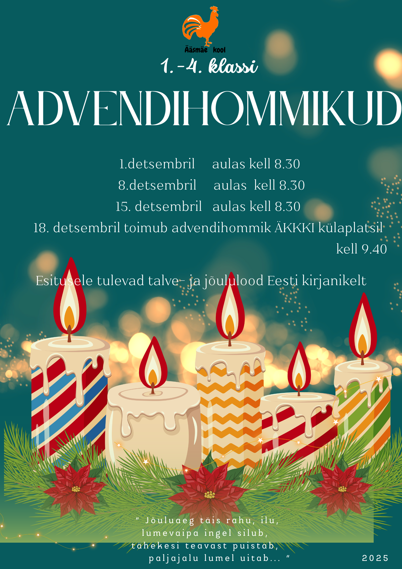 ► 8.30 – 9.15 1. advendihommik aulas (1.-4. k)