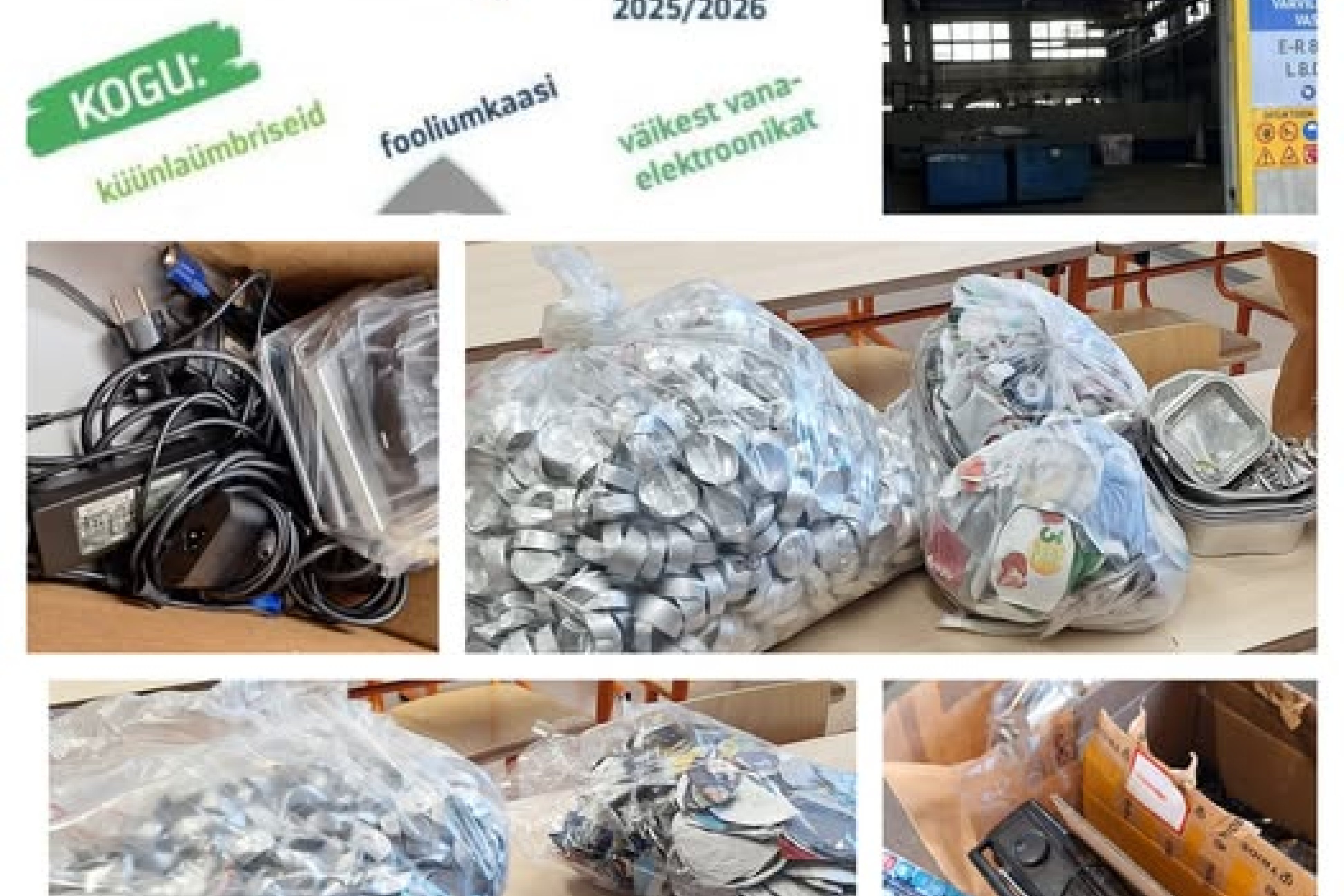 9. a ja 9. b klass (15 osalejat) kogus u 1.3 kg (1314 tk) küünlaümbriseid, u 1 kg fooliumkaasi ja 22 kg elektroonikat. 8.a ja 8. b klass (8 osalejat) kogus u 1 kg (1003 tk) küünlaümbriseid, u 1 kg fooliumkaasi ja 1 kg elektroonikat.
