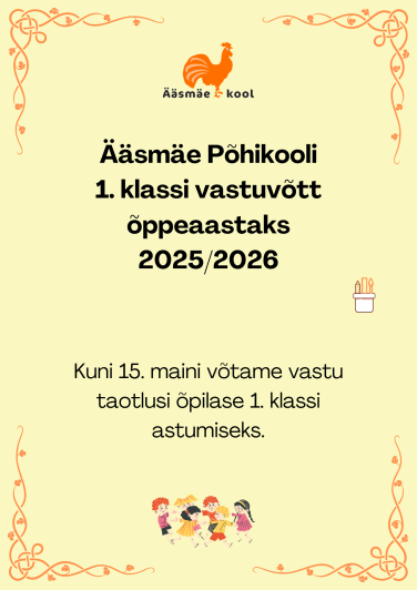 ► Ääsmäe Põhikooli 1. klassi vastuvõtt õppeaastaks 2025/2026