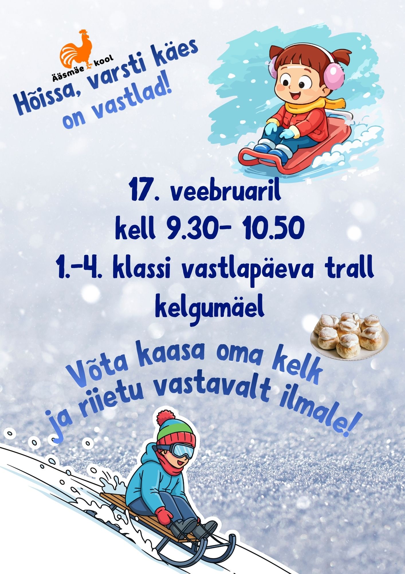 17. veebruaril kell 9.30-10.50 1.-4. klassi vastlapäeva trall kelgumäel.