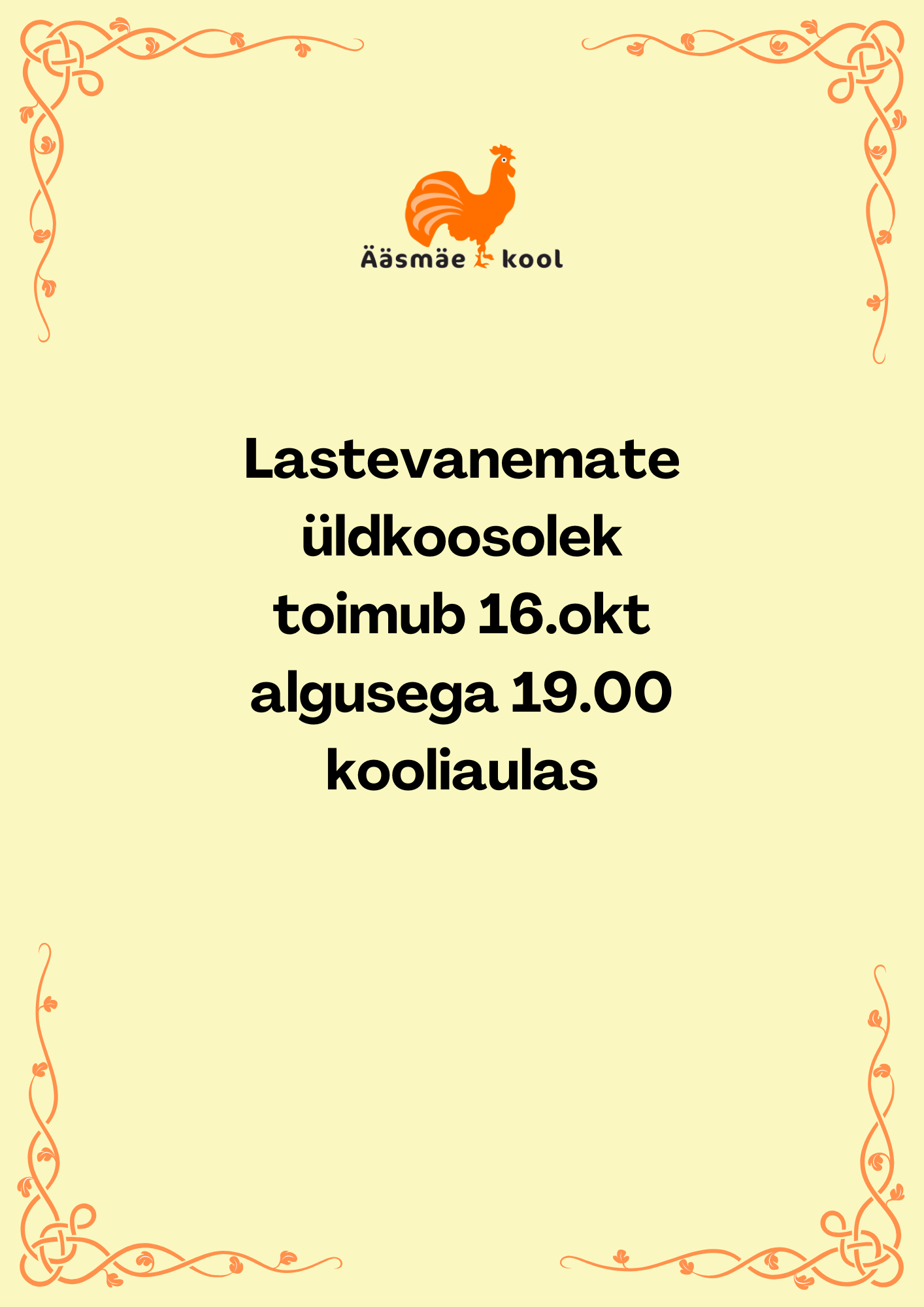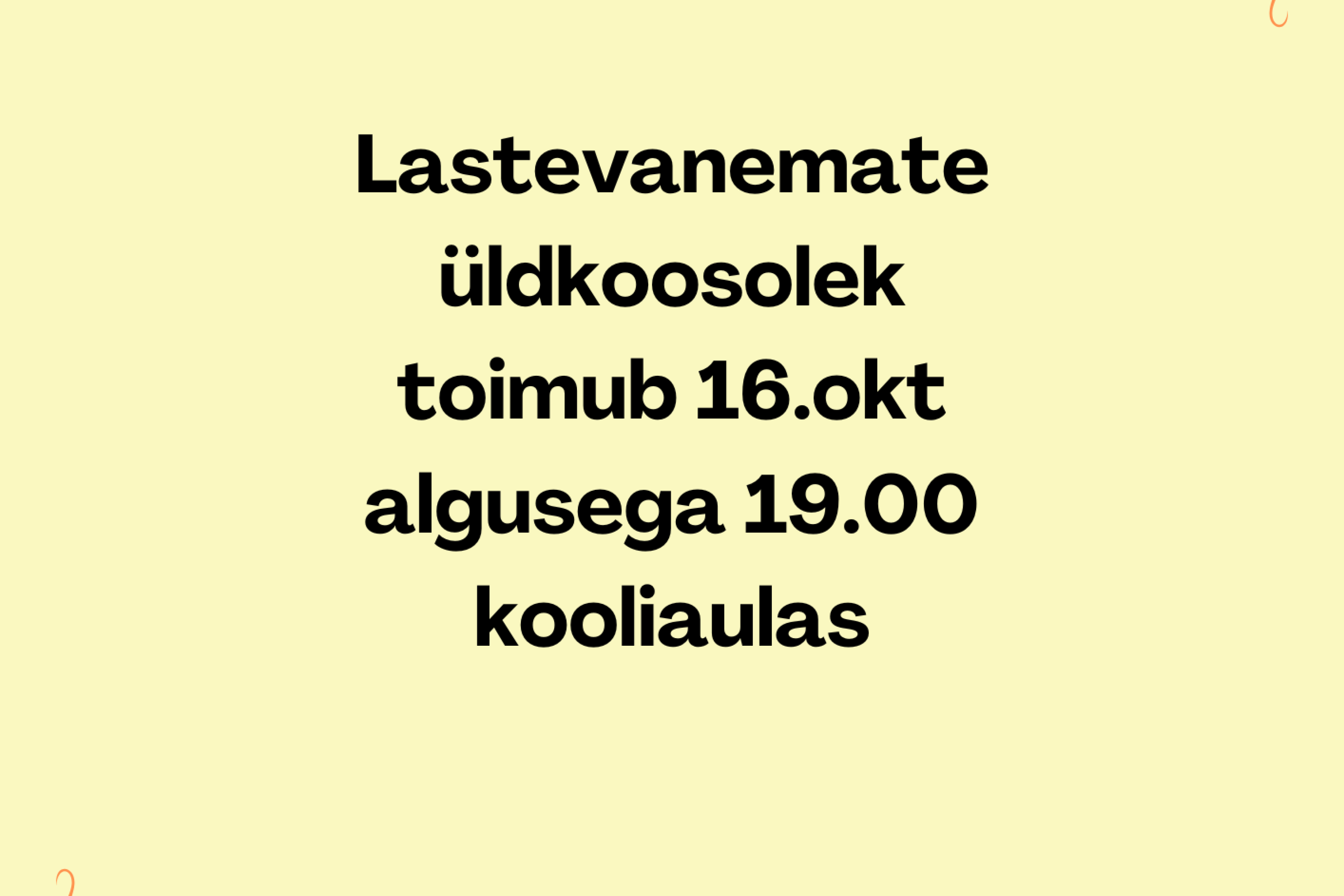 Ootame teid üldkoosolekule neljapäeval, 16.oktoobril, algusega kell 19.00 kooliaulas.